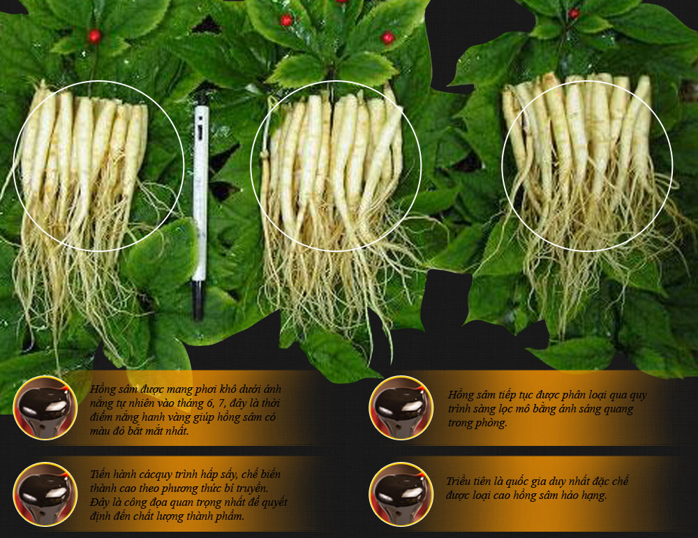 Củ nhân sâm tươi qua nhiều lần xử lý, hấp, sấy, sâm trở thành củ hắc sâm với màu đen đặc trưng, chất lượng vượt trội. Từ củ hắc sâm lại trải qua quá trình chiết xuất hiện đại, công nghệ cao tạo nên những sản phẩm Cao hắc sâm Hàn Quốc cao cấp.