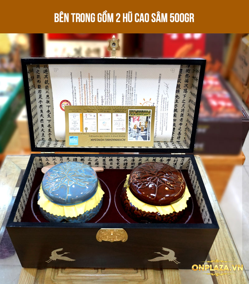 Cao hồng sâm Hàn Quốc cao cấp hũ đôi 500g x 2 hộp chuyên sử dụng chăm sóc sức khỏe. Thành phần hoàn toàn tự nhiên từ nhân sâm, hồng sâm, mật ong... nên an toàn phù hợp dùng lâu dài chăm sóc sức khỏe. Tác dụng chính là hỗ trợ: tăng cường sức khỏe, phục hồi thể lực, nâng cao đề kháng, giúp ăn ngon ngủ tốt. Sản phẩm được on plaza nhập khẩu và phân phối chính hãng.