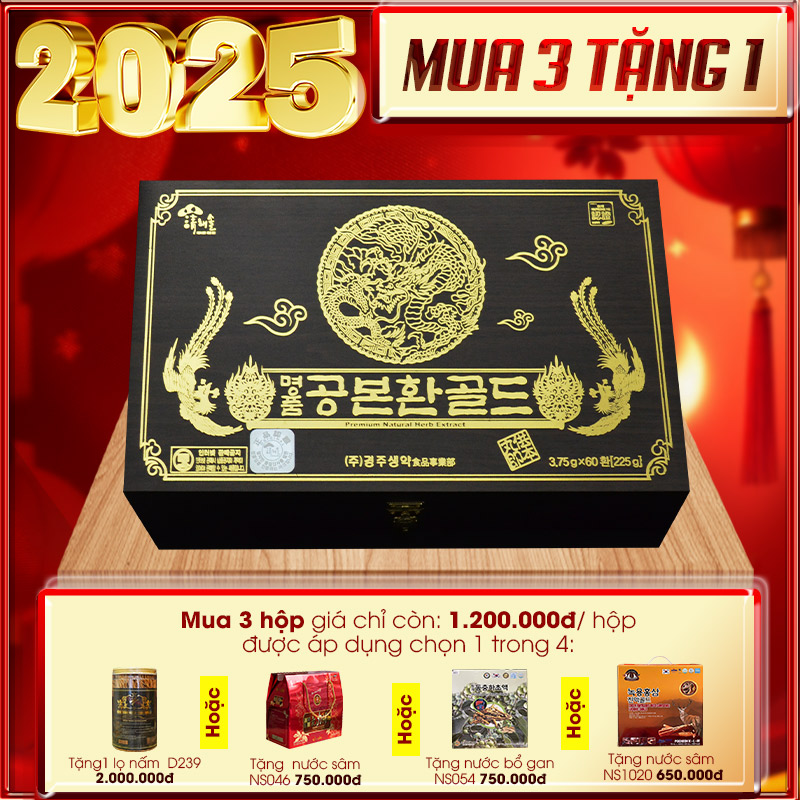 Hộp quà biếu cao cấp Tăng cường thể lực Gong Bon Dan Hàn Quốc 60 viên hộp gỗ cao cấp D023