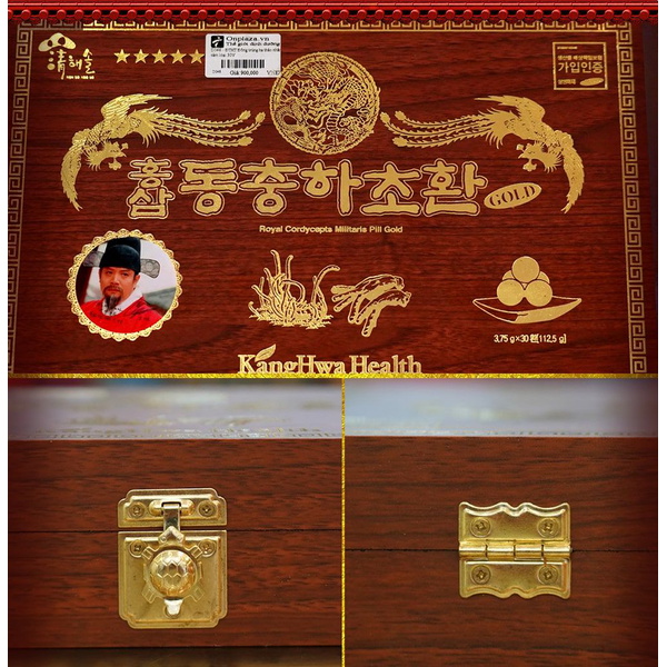 Hộp đông trùng hạ thảo dạng viên hãng KangHwa Health hộp gỗ 60 viên