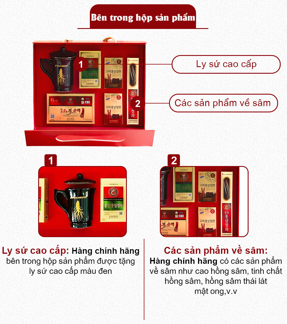 Một số hình ảnh giúp khách hàng nhận diện sản phẩm Hộp quà biếu sức khỏe Lộc Phát POCHEON Hàn Quốc chính hãng: