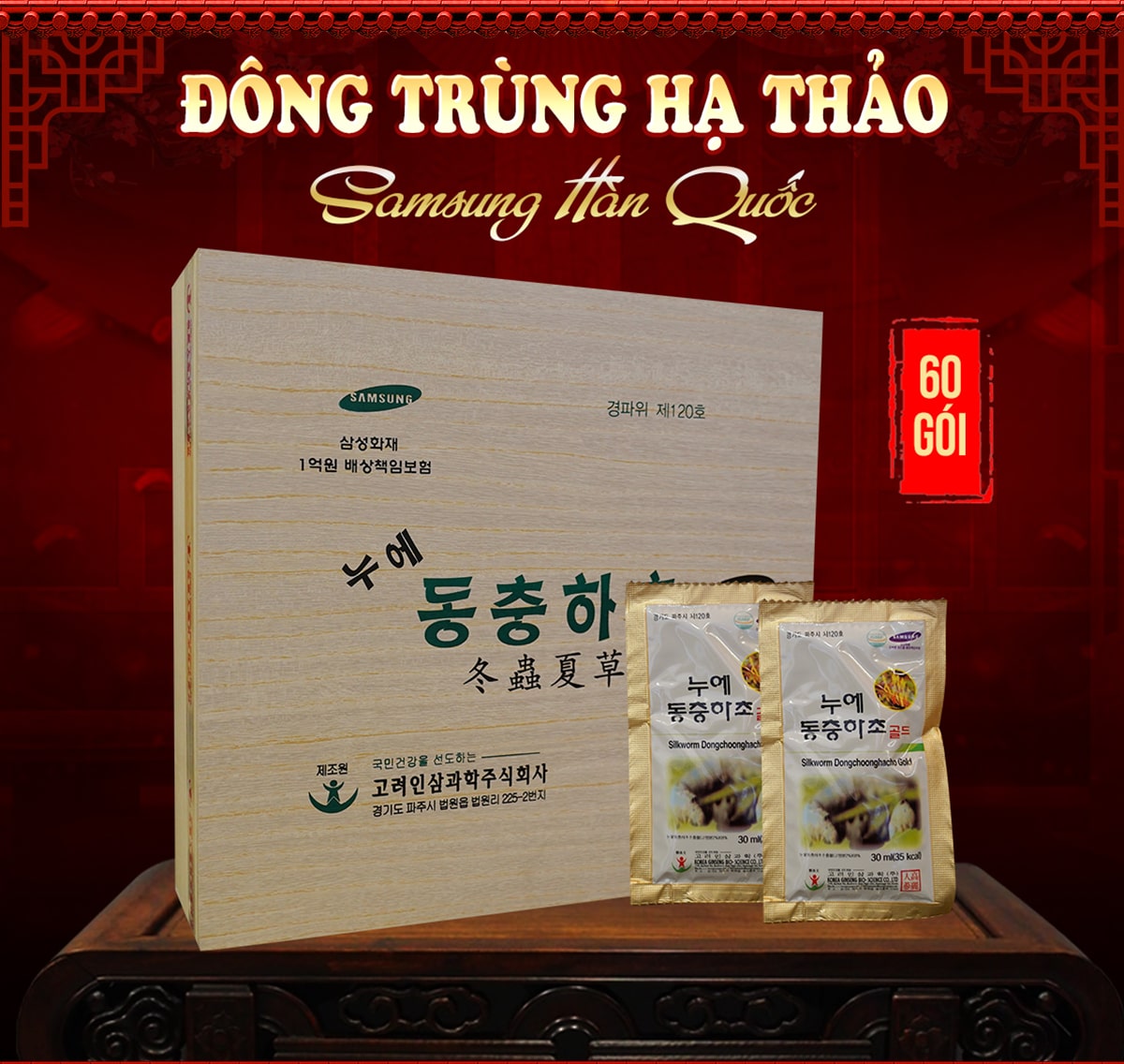 Quà tặng sức khỏe Nước đông trùng hạ thảo Samsung Hàn Quốc hộp gỗ 60 gói D044