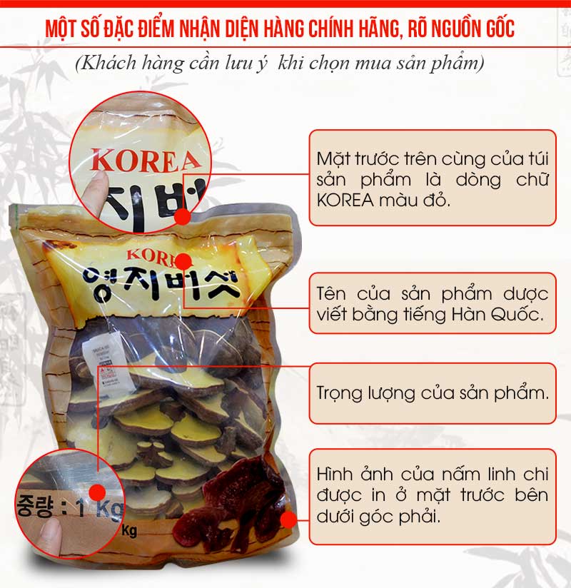 Do đó, khi mua hàng, khách hàng cần phải chú ý đến vấn đề này. Ngoài ra, trước khi mua nấm linh chi bao tử Hàn Quốc, quý khách hàng có thể nhận diện một số đặc điểm chính hãng dưới đây: