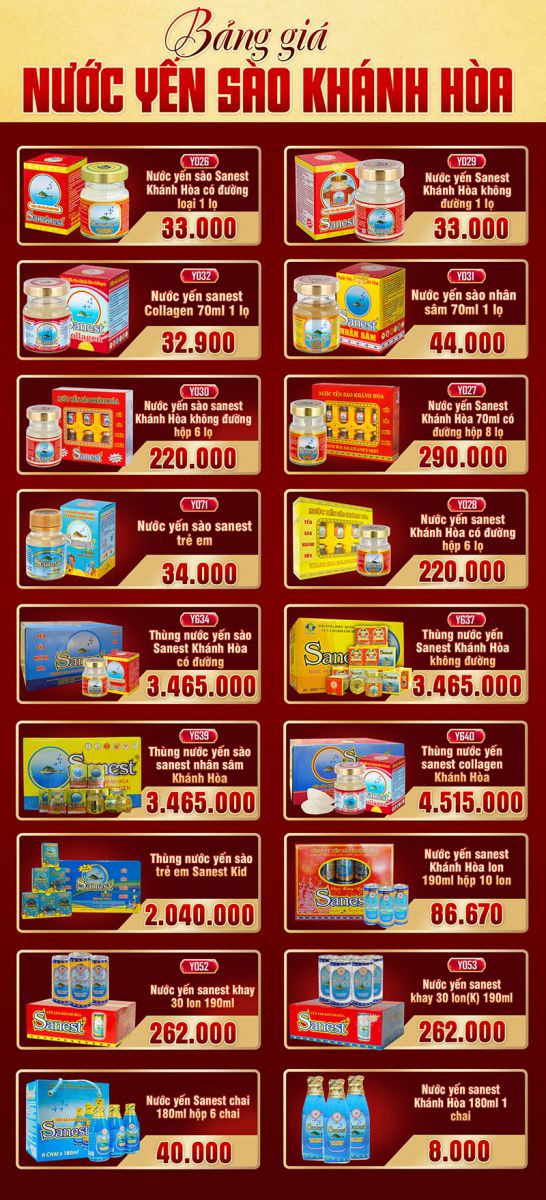 Sản phẩm của thương hiệu nổi tiếng Yến sào Khánh Hòa