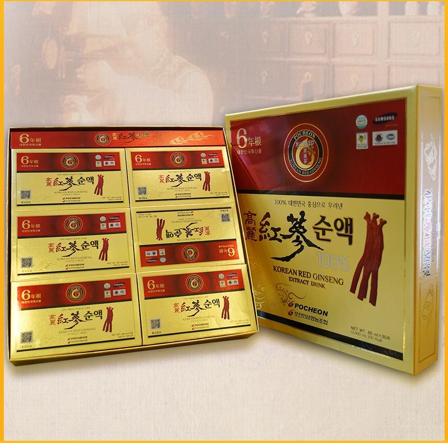 Mời quý khách tham khảo sản phẩm nước sâm được ép từ sâm 6 năm tuổi có giá phải chăng: Nước ép hồng sâm Hàn Quốc 6 năm tuổi hộp 30 gói NS046