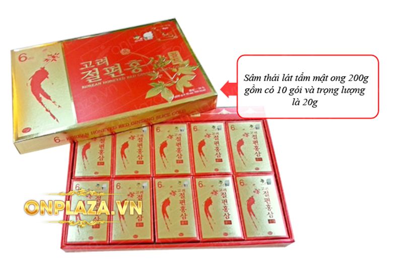 Hồng sâm thái lát mỏng tẩm mật ong, rất dễ ăn, đã tẩm mật ong giúp khử đi vị đắng của hồng sâm. Nhờ vậy ai cũng có thể dùng, ăn trực tiếp, hãm trà, pha nước nóng đều phù hợp.