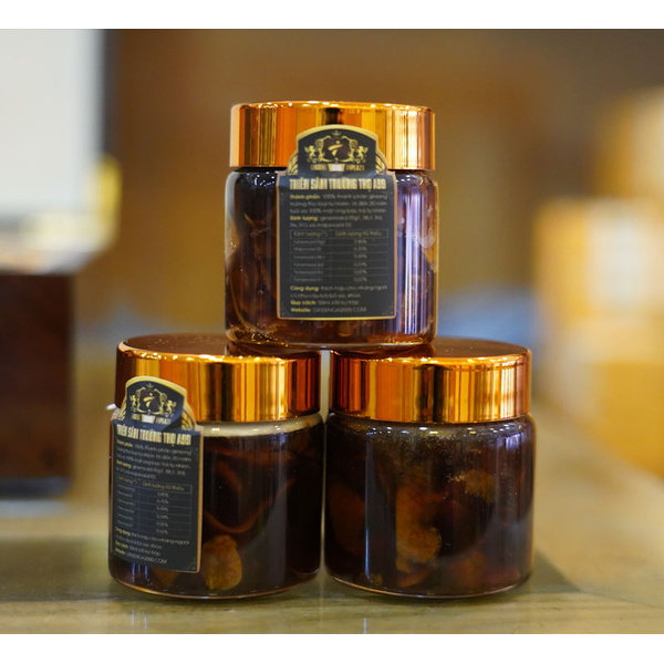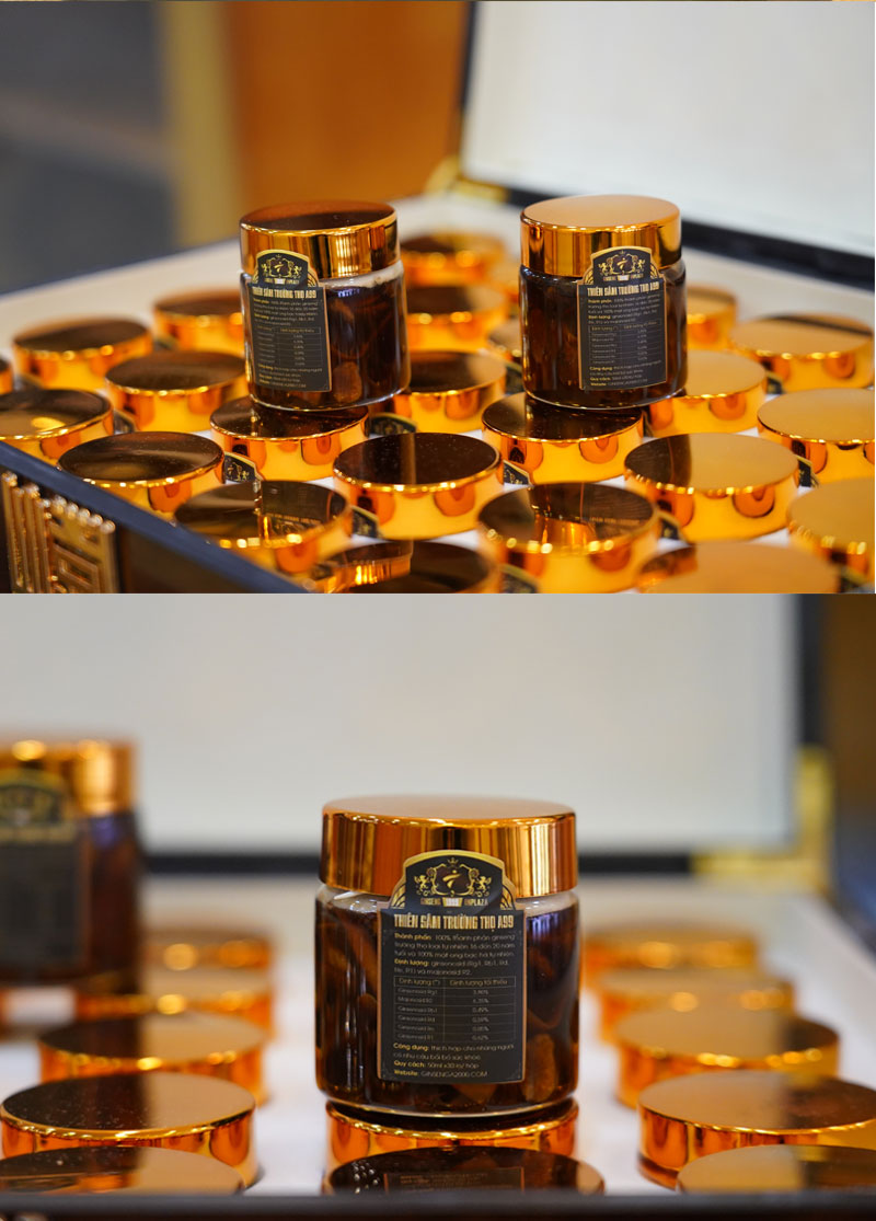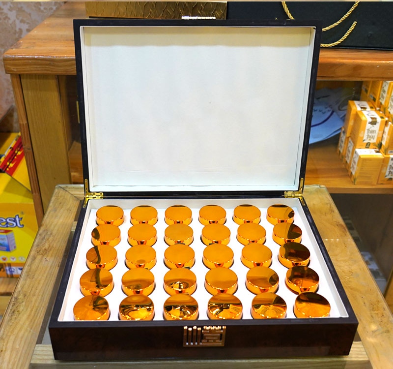 Dưới đây là những hình ảnh về sản phẩm Sâm Ngọc Linh ngâm mật ong hộp 30 lọ (nhỏ) đóng hộp gỗ: