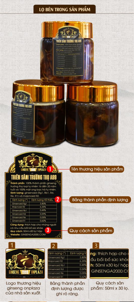 Thành phần ấn tượng trong sản phẩm Sâm Ngọc Linh mật ong hộp 30 lọ (nhỏ)