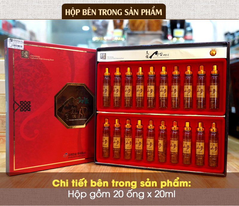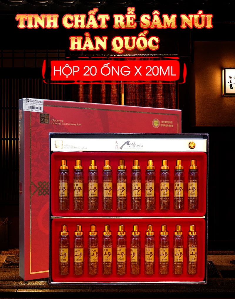 Tinh chất rễ sâm núi tự nhiên Hàn Quốc hộp 20 ống x 20ml tinh luyện từ rễ sâm núi tự nhiên lâu năm tuổi nên hàm lượng dưỡng chất rất cao. Đây là dòng sản phẩm cao cấp không chỉ tăng cường sức khỏe, phục hồi thể lực mà còn là món quà biếu sang trọng ý nghĩa dành cho nhiều đối tượng khác nhau.